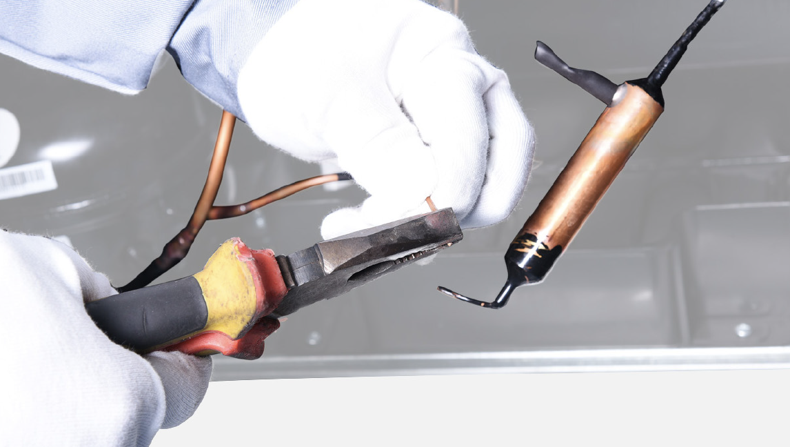 Re-braze a copper tube onto processing tube of compressor. Click below link to get more details for brazing requirements, go to Annex B1