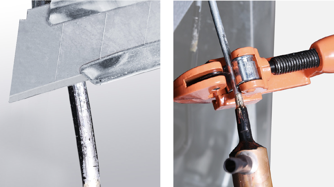 Melt brazing material with flame and pull out processing tube with pliers.