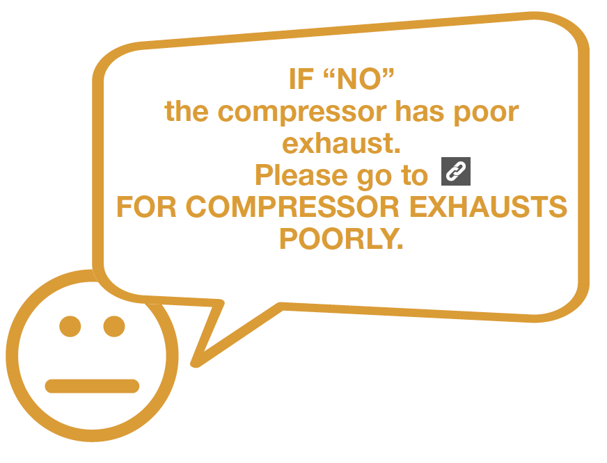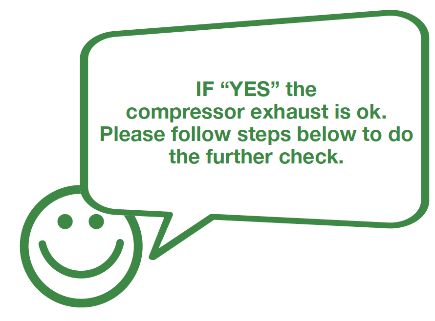 Power up the compressor and feel the exhaust pressure from the exhausting pipe with a piece of paper.