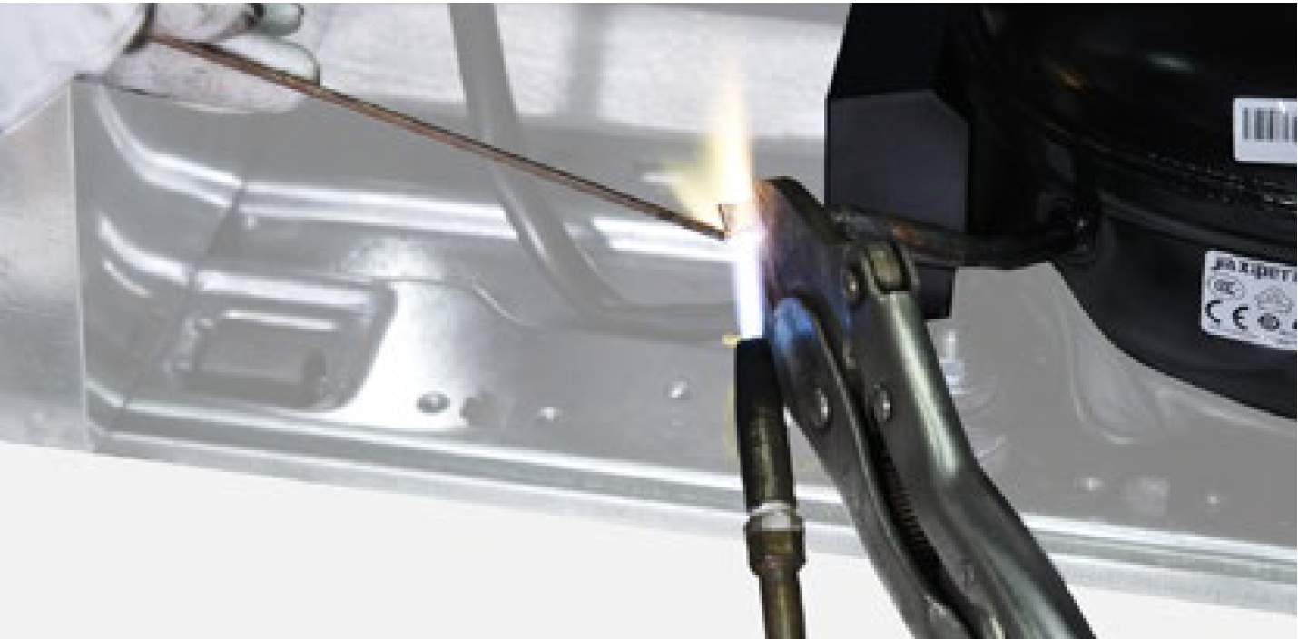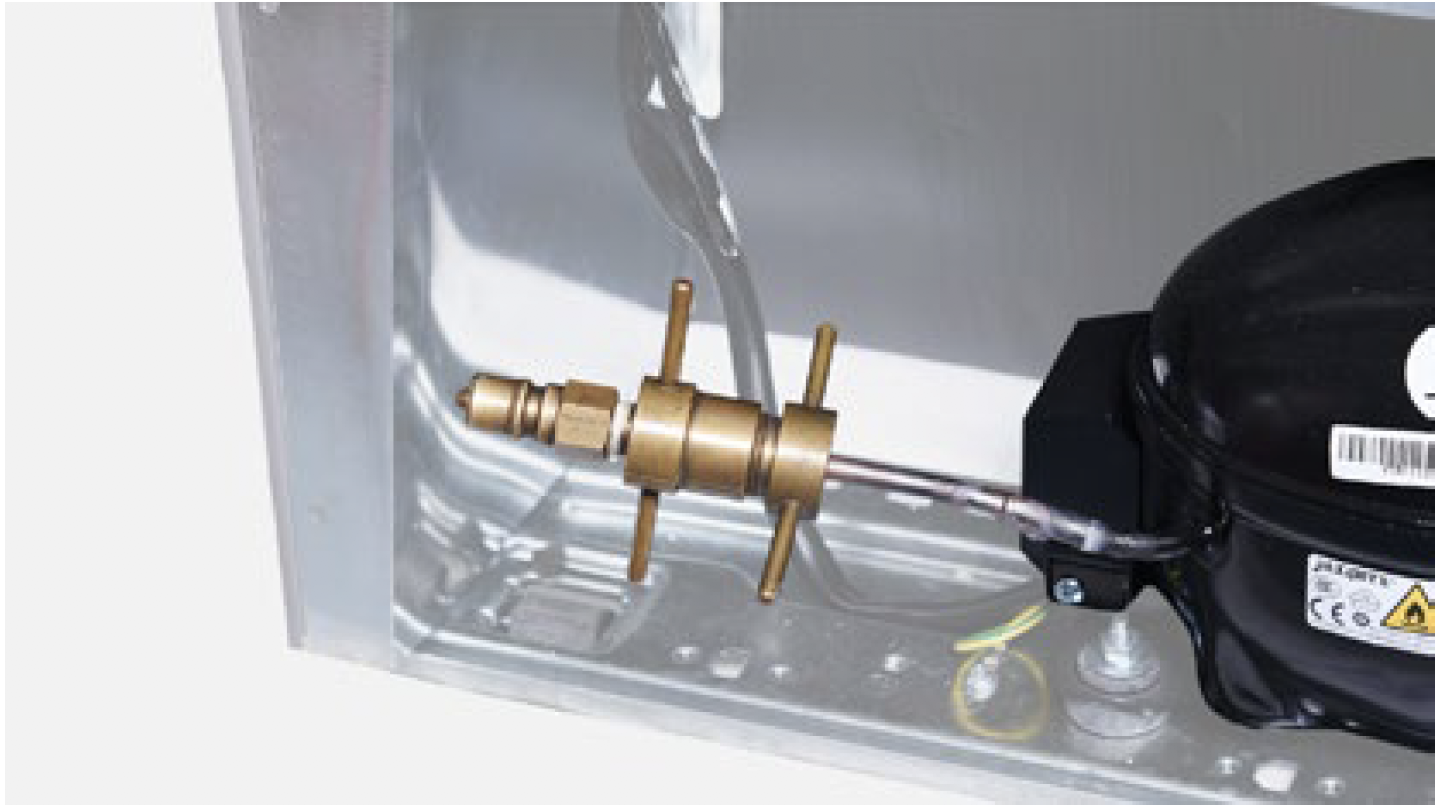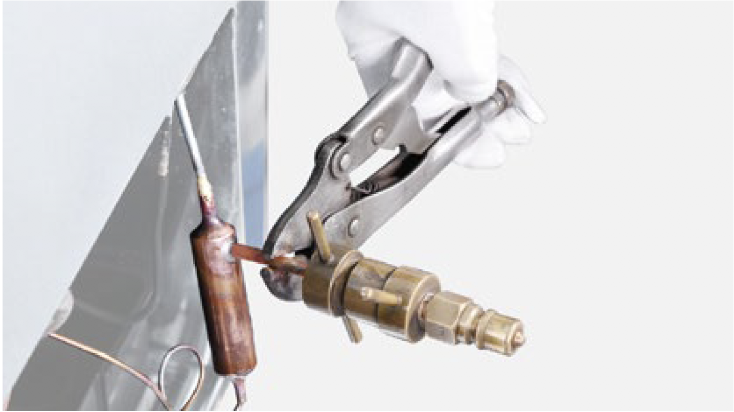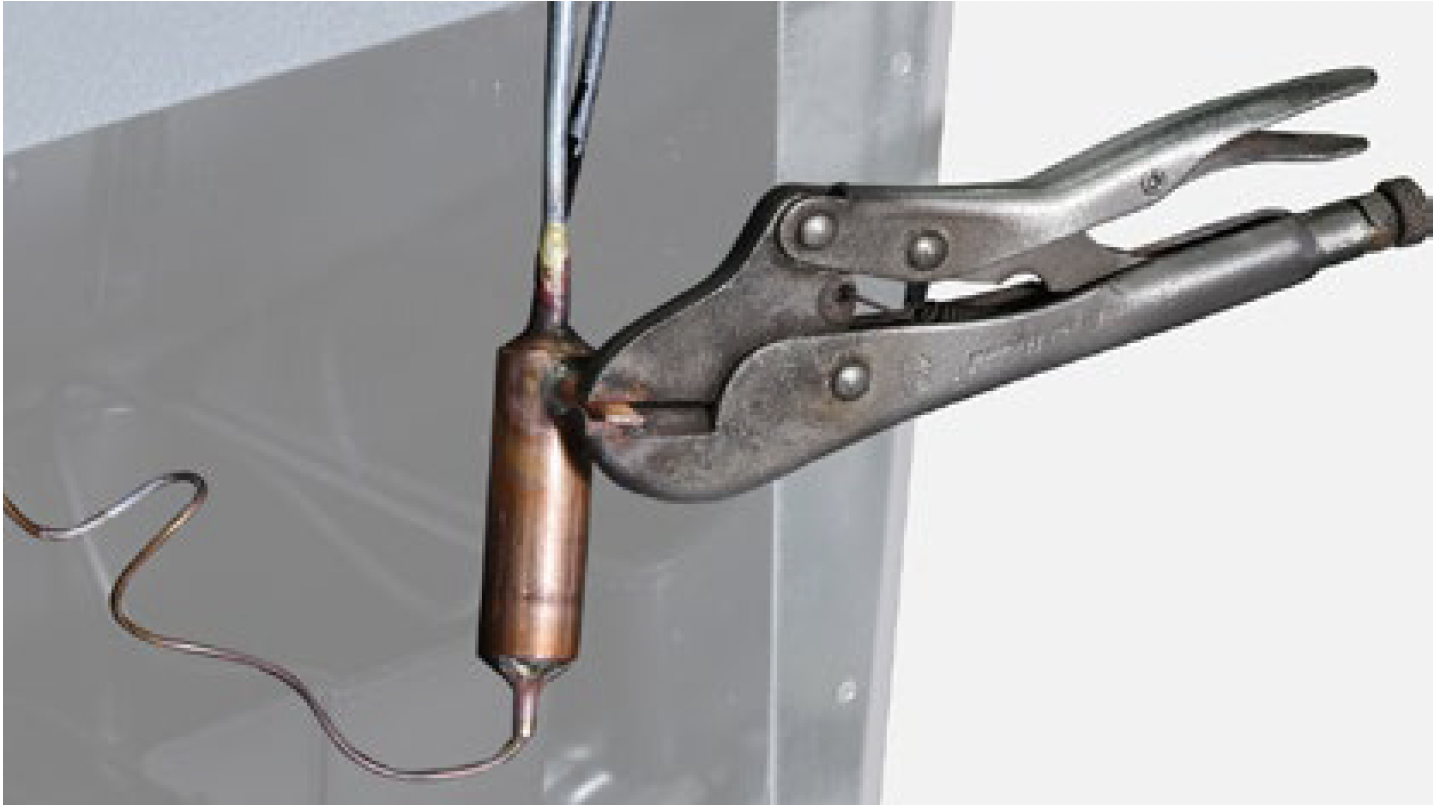 Discharge refrigerant. Cut off the charging tube with pliers.