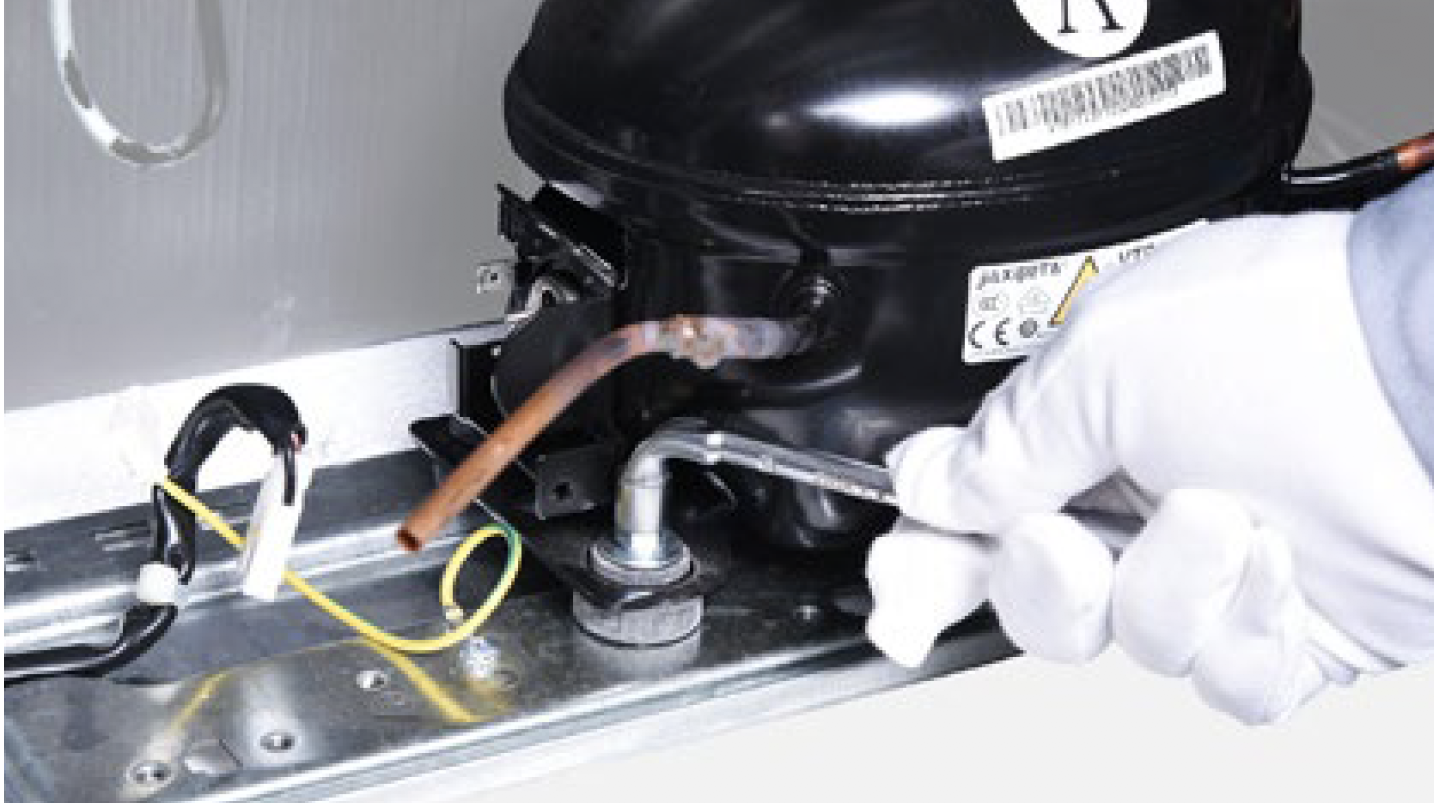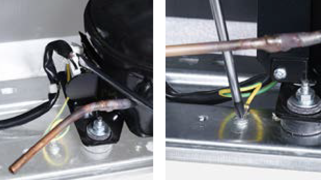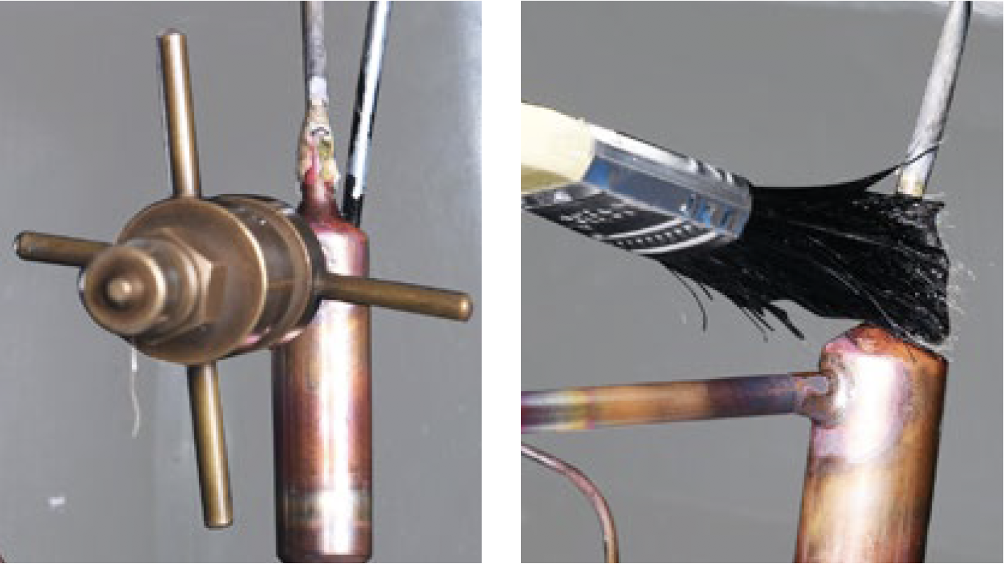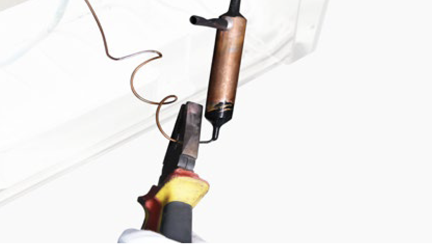 Discharge refrigerant. Cut off the charging tube with pliers.