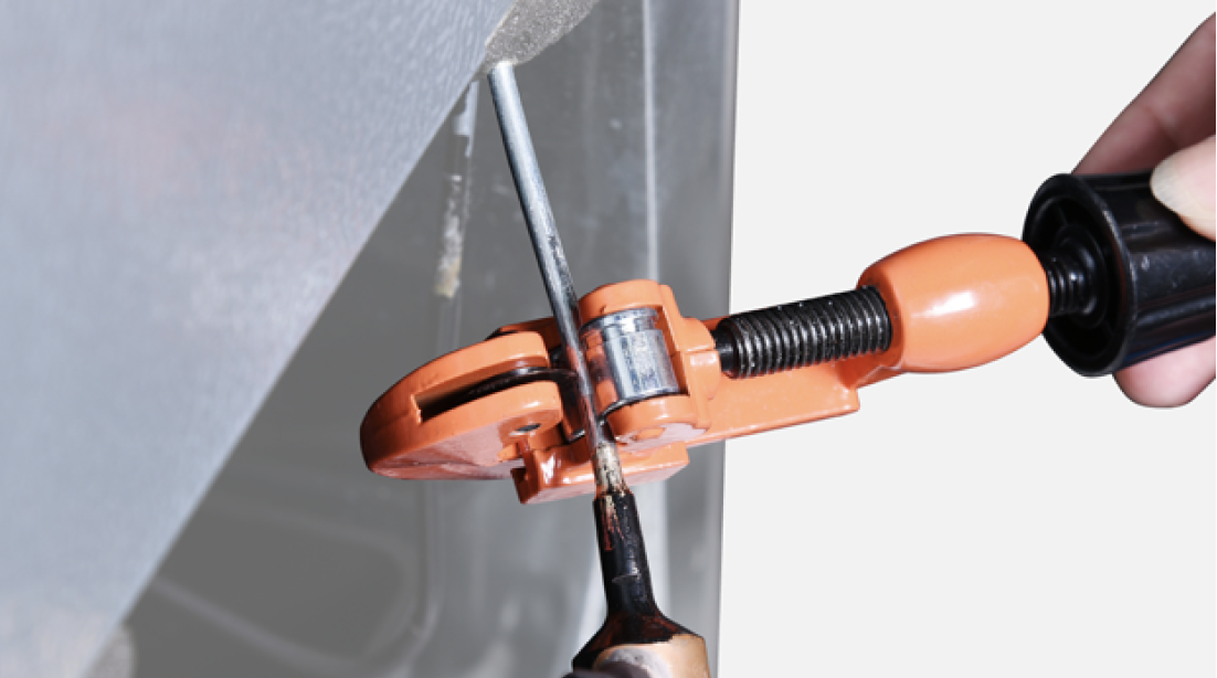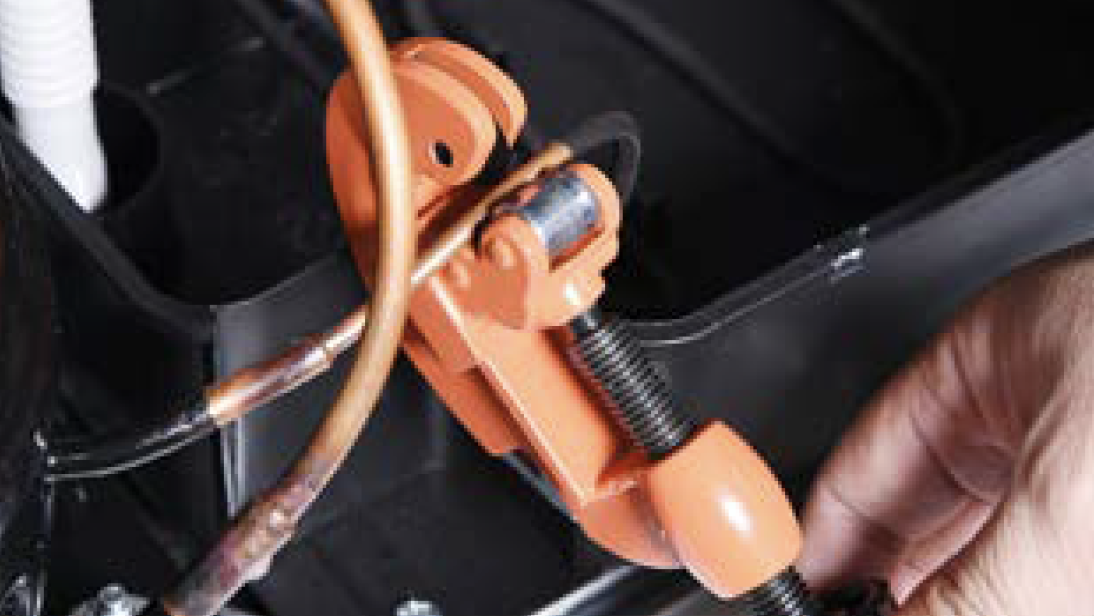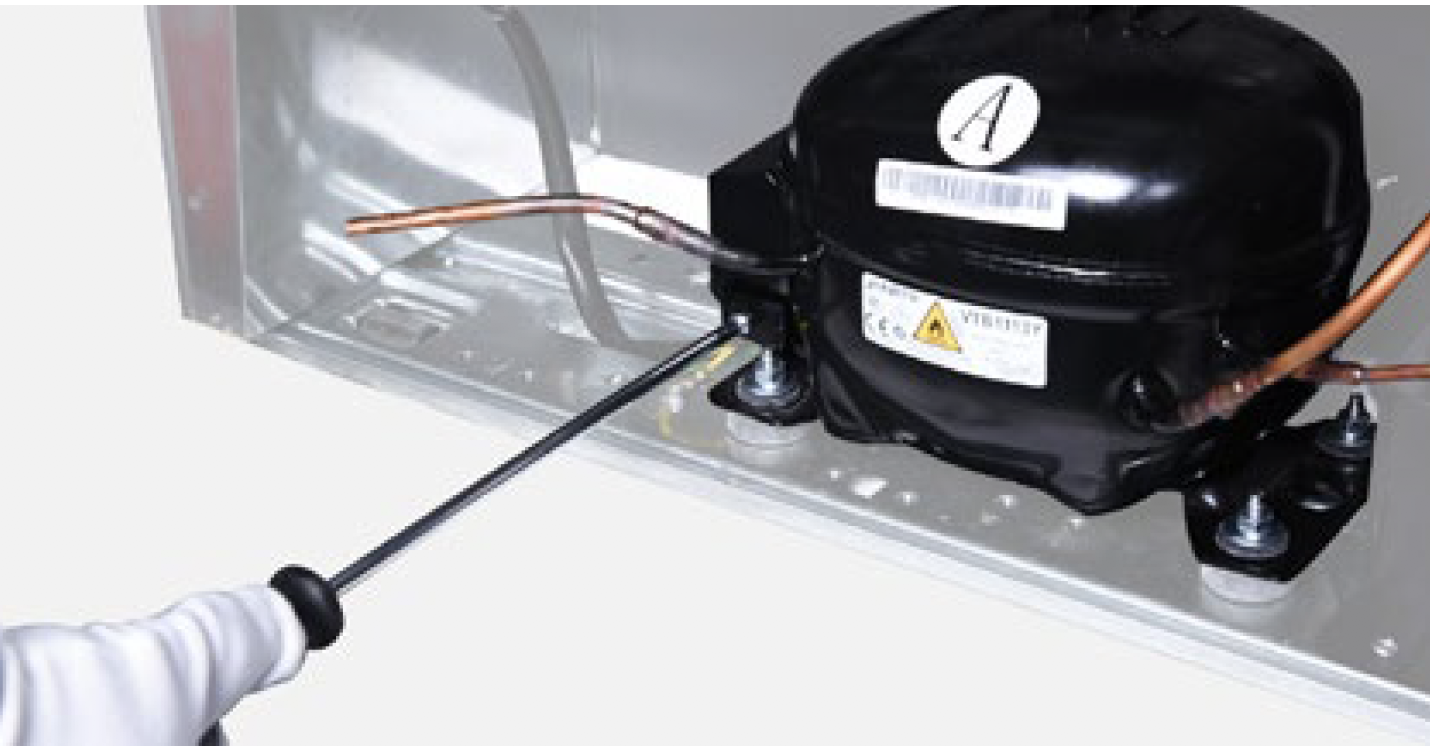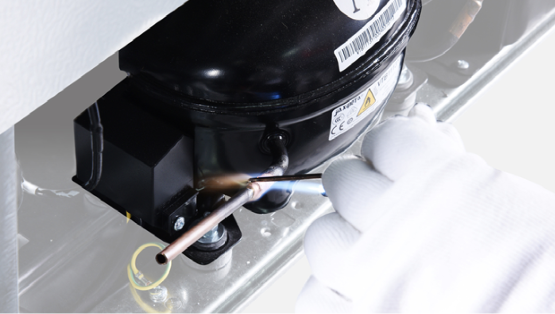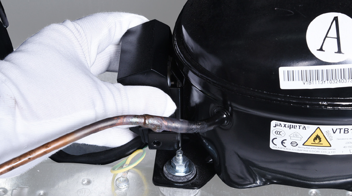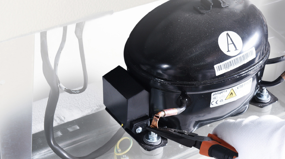 Discharge refrigerant. Cut off the charging tube with pliers.