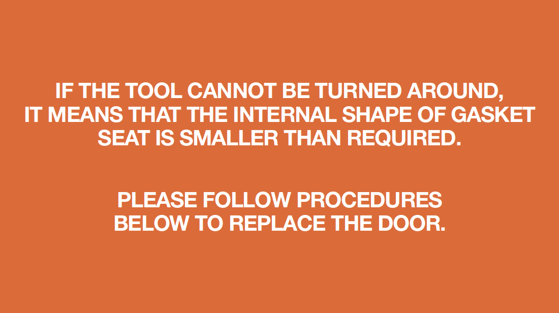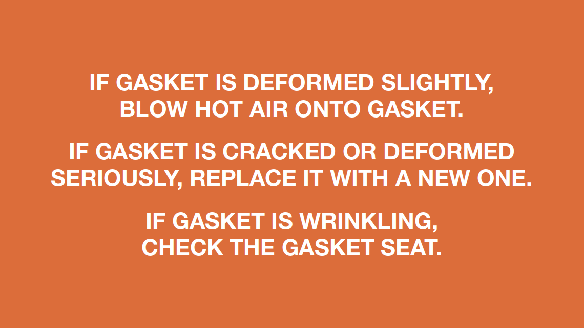 Check internal shape of gasket seat. Use tool with same shape as gasket seat and insert into the seat. Then turn the tool around.